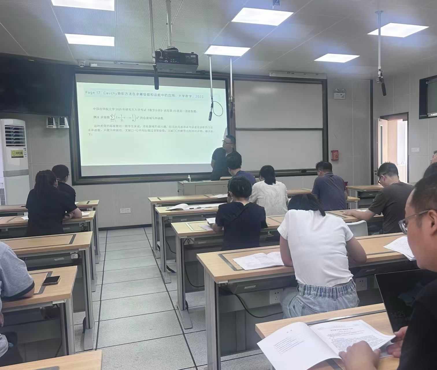 5月22日下午,大学数学部第三期教学沙龙暨学院第六期青年教师助讲活动在9号楼412教室如期举行。本次活动聚焦"教研论文写作",由解烈军老师担任主讲,学院近30名教师参加活动。解老师系统梳理了其在《大学数学》和《高等数学研究》等核心期刊发表的七篇教研论文的写作脉络,生动地还原了每篇论文从灵感捕捉到实践教学的完整历程。在论文素材挖掘环节,解老师提出了三条途径:一是善于捕捉教学环节的“点点火花”;二是勤于创新教学设计的"范式突破";三是精于剖析竞赛考研的"奇思妙解"。参加活动的老师纷纷表示收获良多。