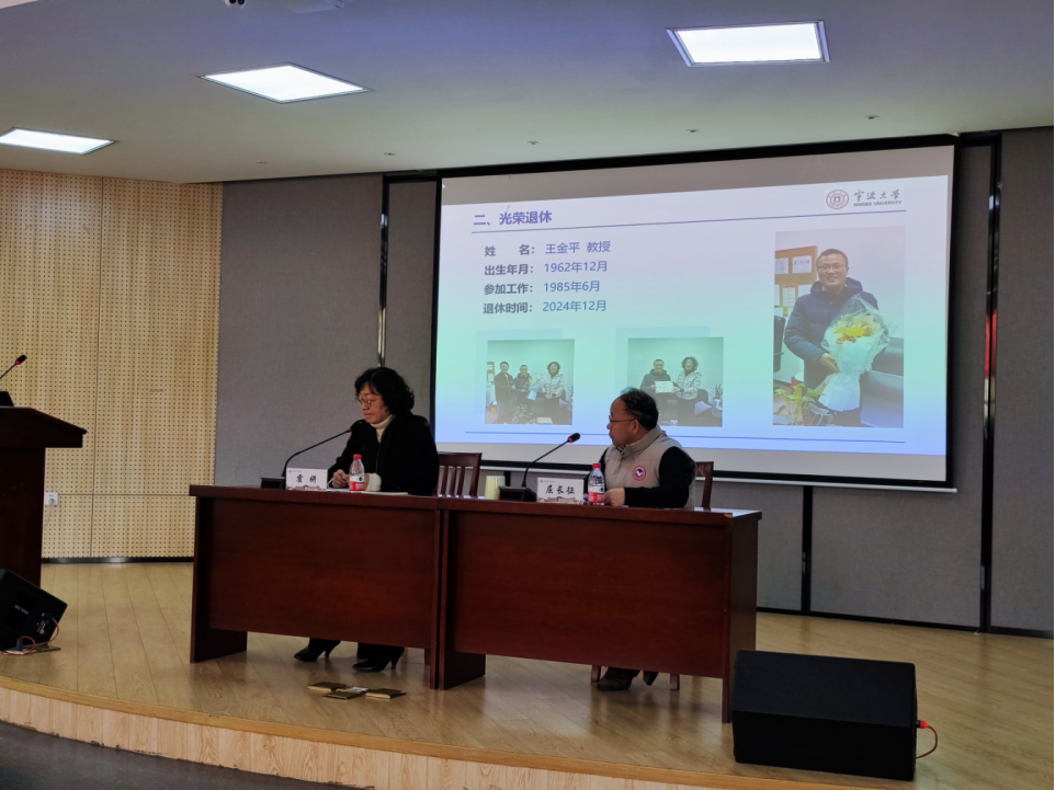 2025年1月3日,博彩导航 分工会在113报告厅召开了教职工荣休仪式,向光荣退休的王金平老师致意,学院特聘院长屈长征、院党委书记霍妍、工会主席李茂华及教师代表等参加了仪式。