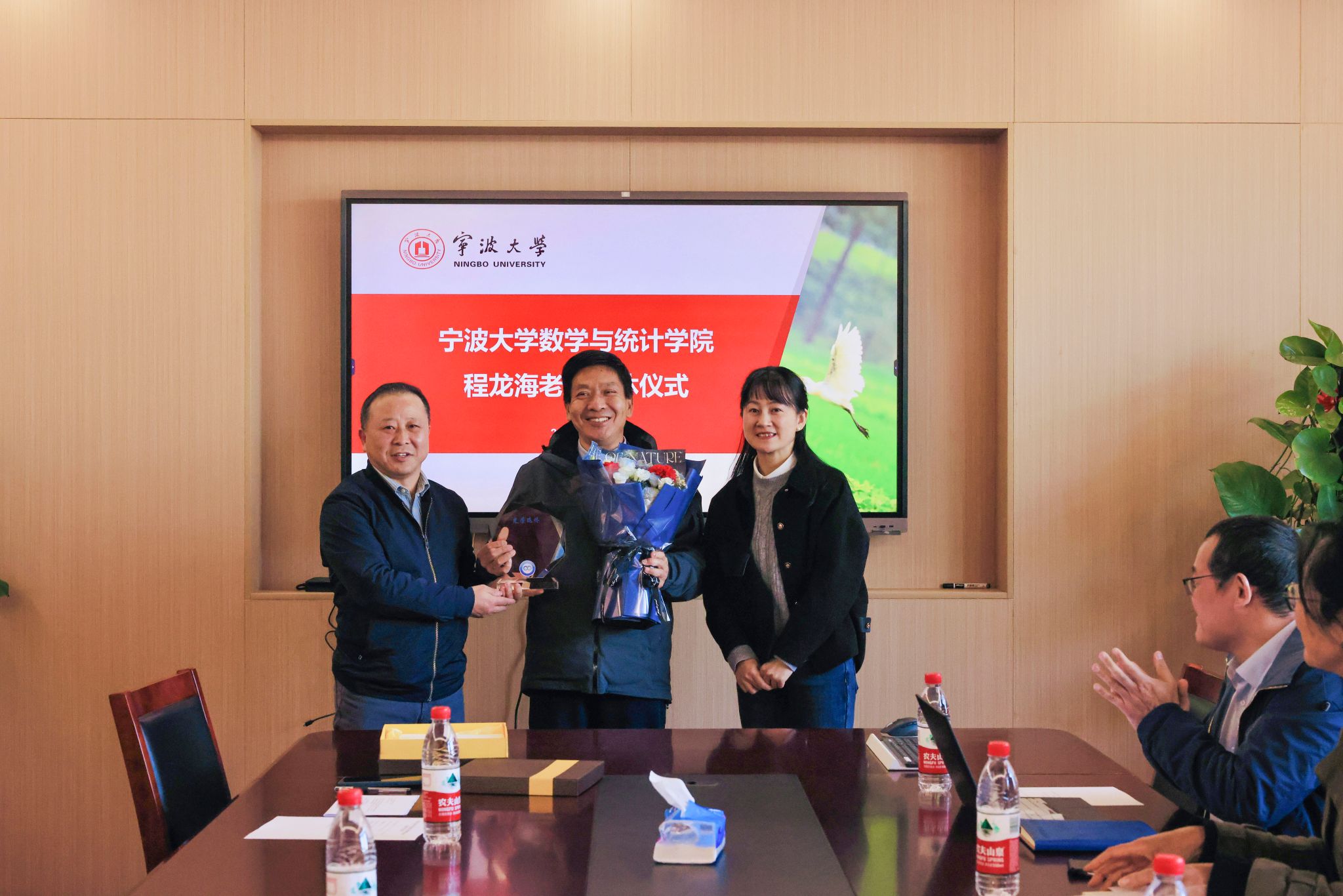 3月13日下午,数学与统计学院分工会举办教师荣休仪式,学院领导班子成员、工会主席、各系教师代表与荣休教师程龙海齐聚一堂,以感恩之心向程老师致以崇高敬意与美好祝福。现场情谊满满,处处彰显着对荣休教师半生奉献的礼赞与关怀。