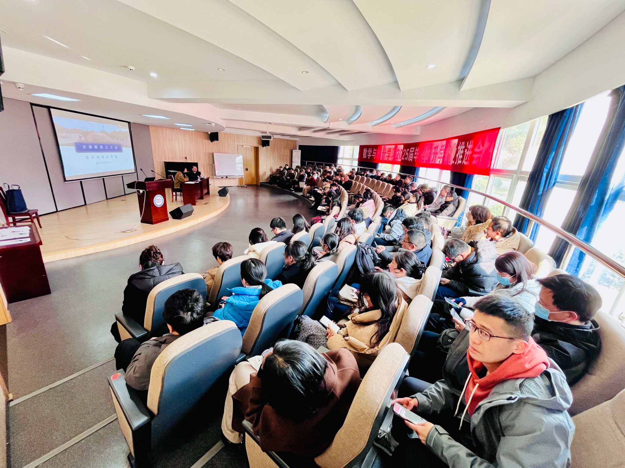 2025年2月21日,我院在113报告厅召开了2024-2025学年第二学期第一次全院大会。会议由院党委书记霍妍主持,学院全体教职工参加本次会议。