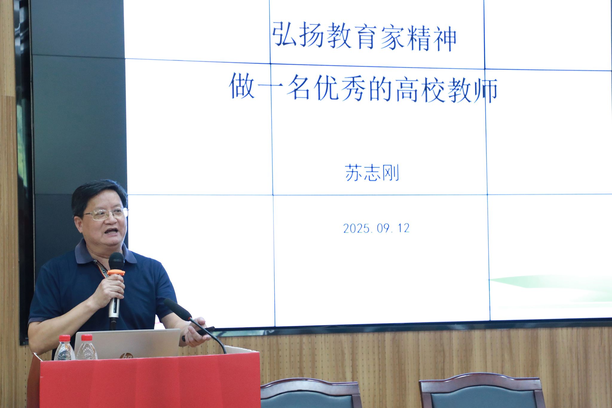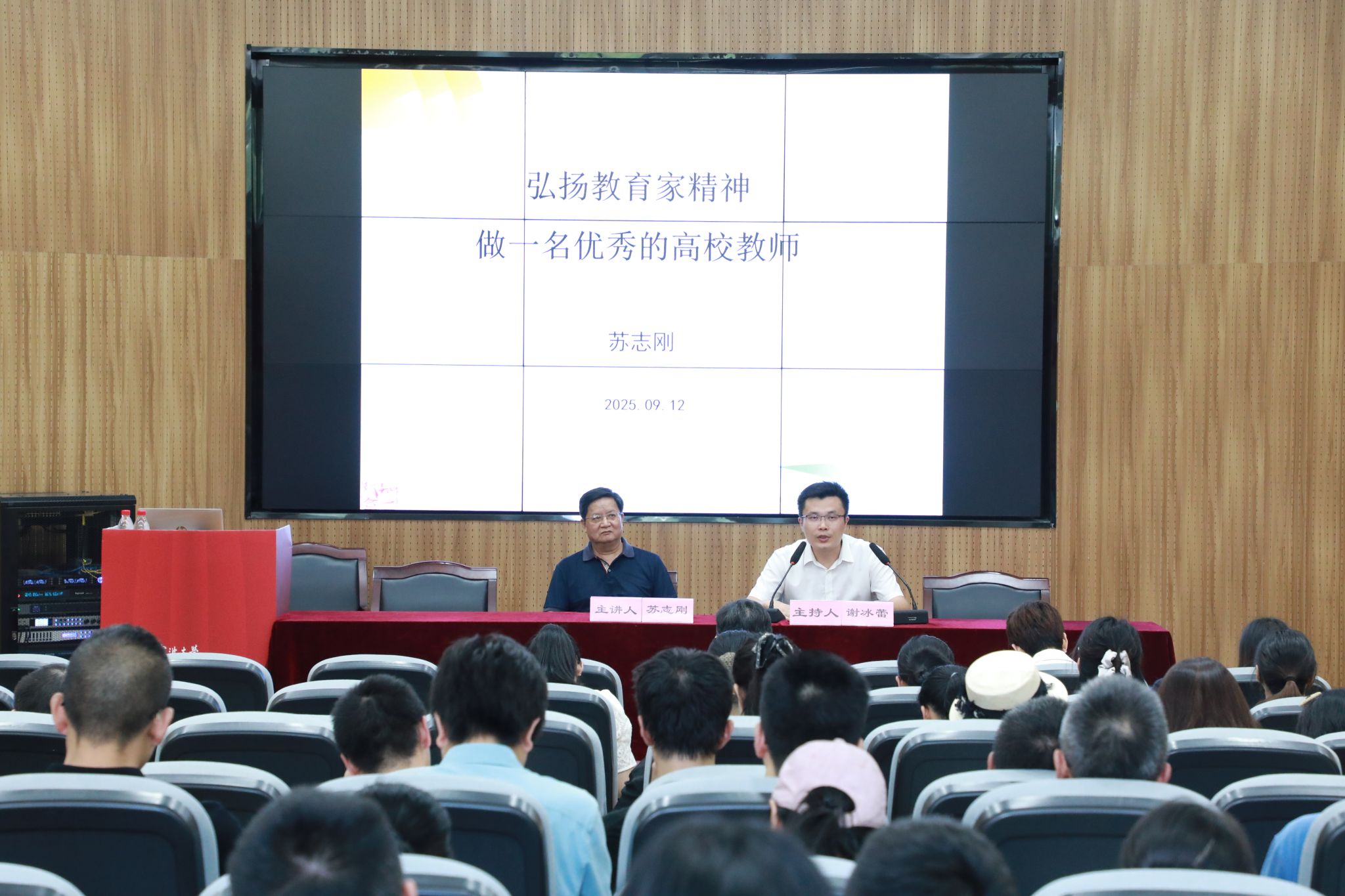 党委共同承办的“弘扬教育家精神,做一名优秀的高校教师”专题讲座在宁波大学物理学院龙赛报告厅成功举行。讲座邀请了苏志刚教授主讲,学校200余名教师参加了讲座。