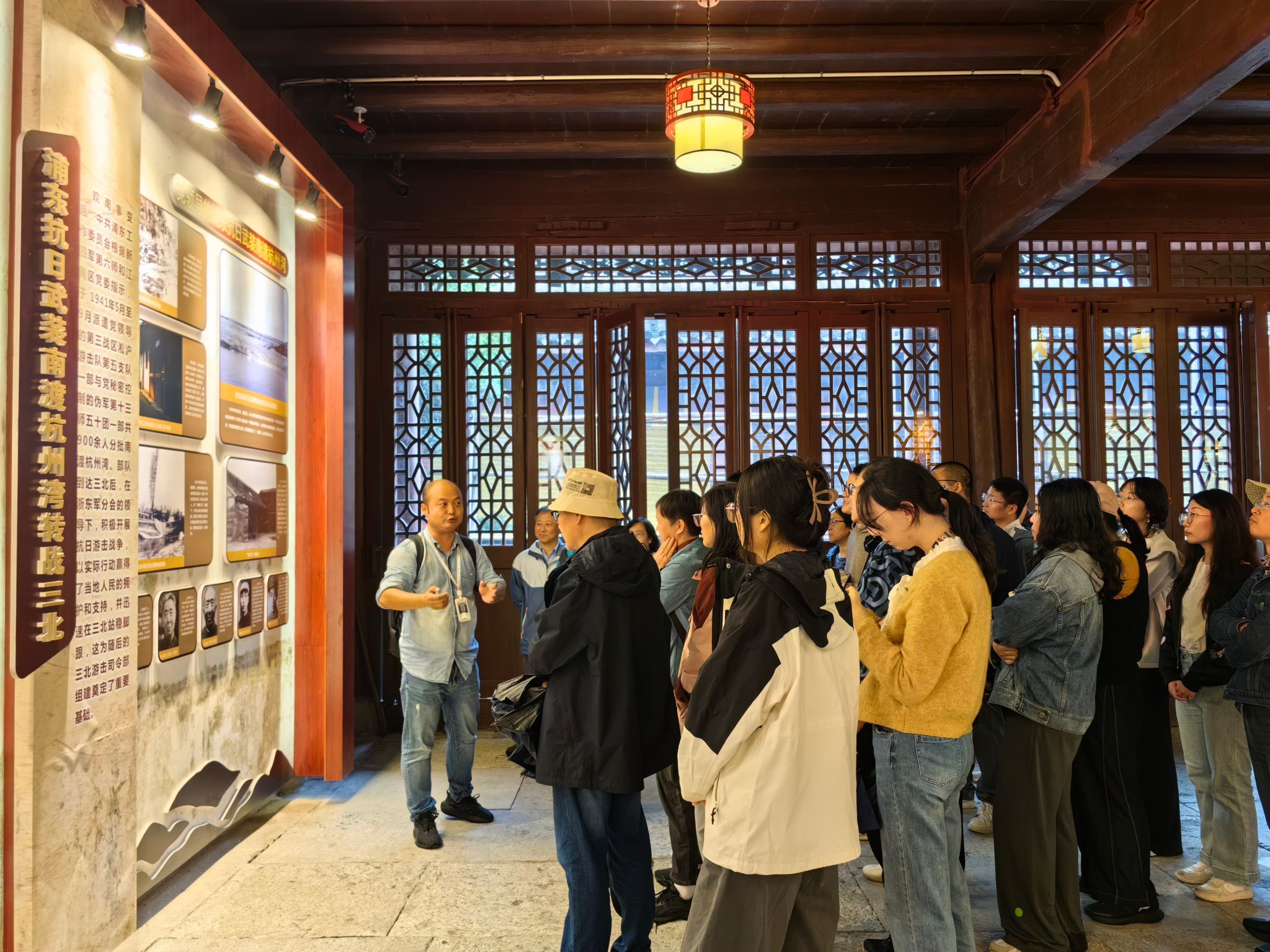 三北游击司令部作为抗日战争时期浙东抗日根据地的重要指挥枢纽,见证了无数革命先烈为民族独立和人民解放浴血奋战的峥嵘岁月,是承载红色记忆、弘扬革命精神的重要教育基地。活动当天,党员们怀着崇敬的心情来到旧址纪念馆。展馆内斑驳的砖墙仿佛诉说着革命的艰辛,泛黄的照片也记录着军民同心的壮举。在讲解员的带领下,大家了解了粟裕、谭启龙等革命先辈运筹帷幄、指挥抗战的峥嵘岁月。每一段历史都让党员们深受触动,仿佛置身于那个烽火连天的年代,深刻体会到了革命先辈在艰难环境中坚守信仰、奋勇抗敌的崇高精神。