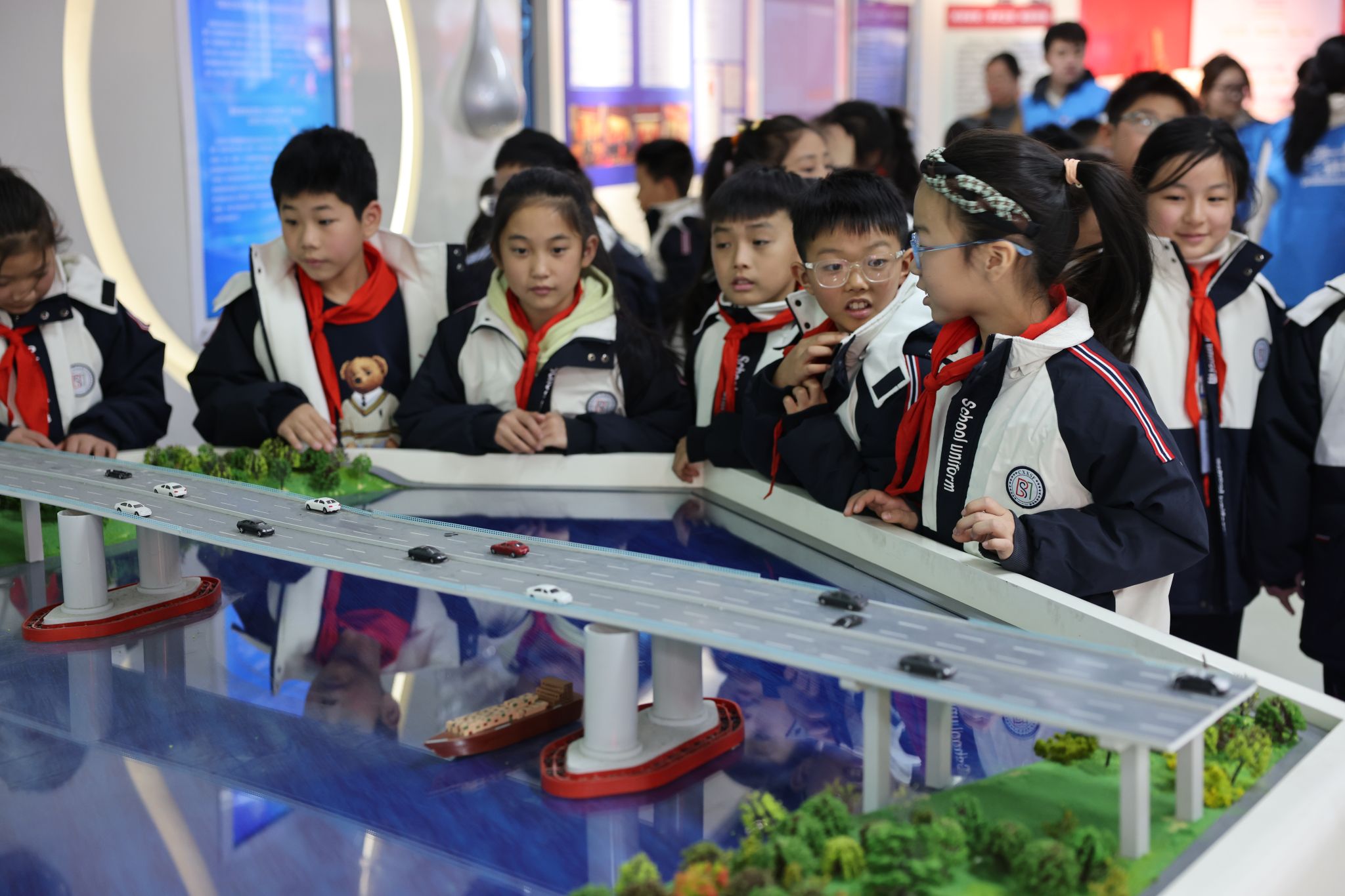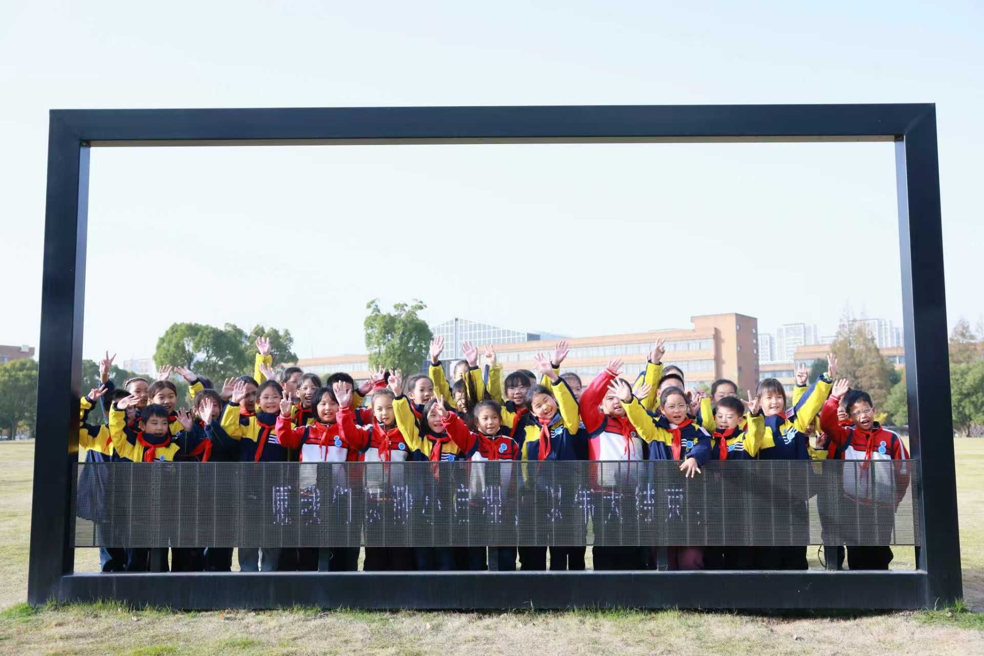 温暖的阳光洒落在宁波大学校园,慈溪观海卫爱心学校和镇海炼化小学的同学们怀揣着憧憬,在小“数”苗志愿者们的引导下步入校史馆。孩子们停下脚步,专注地凝视着那些承载着历史印记的展品,聆听着宁波大学从“宁波帮”捐资建校直至如今桃李芬芳的奋斗历程。那一双双明亮的眼眸中,满是对知识的渴望,一颗颗“大学梦”的种子,已在此时悄然种下。