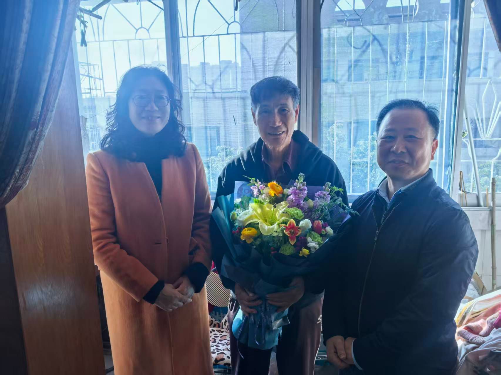 党委书记霍妍、工会主席李茂华、人事秘书张泽林一行专程走访慰问了学院退休老教师俞国华和骆建宁,代表学院致以诚挚的问候和深切的关怀,并送上学院的温暖祝福和新年慰问品。