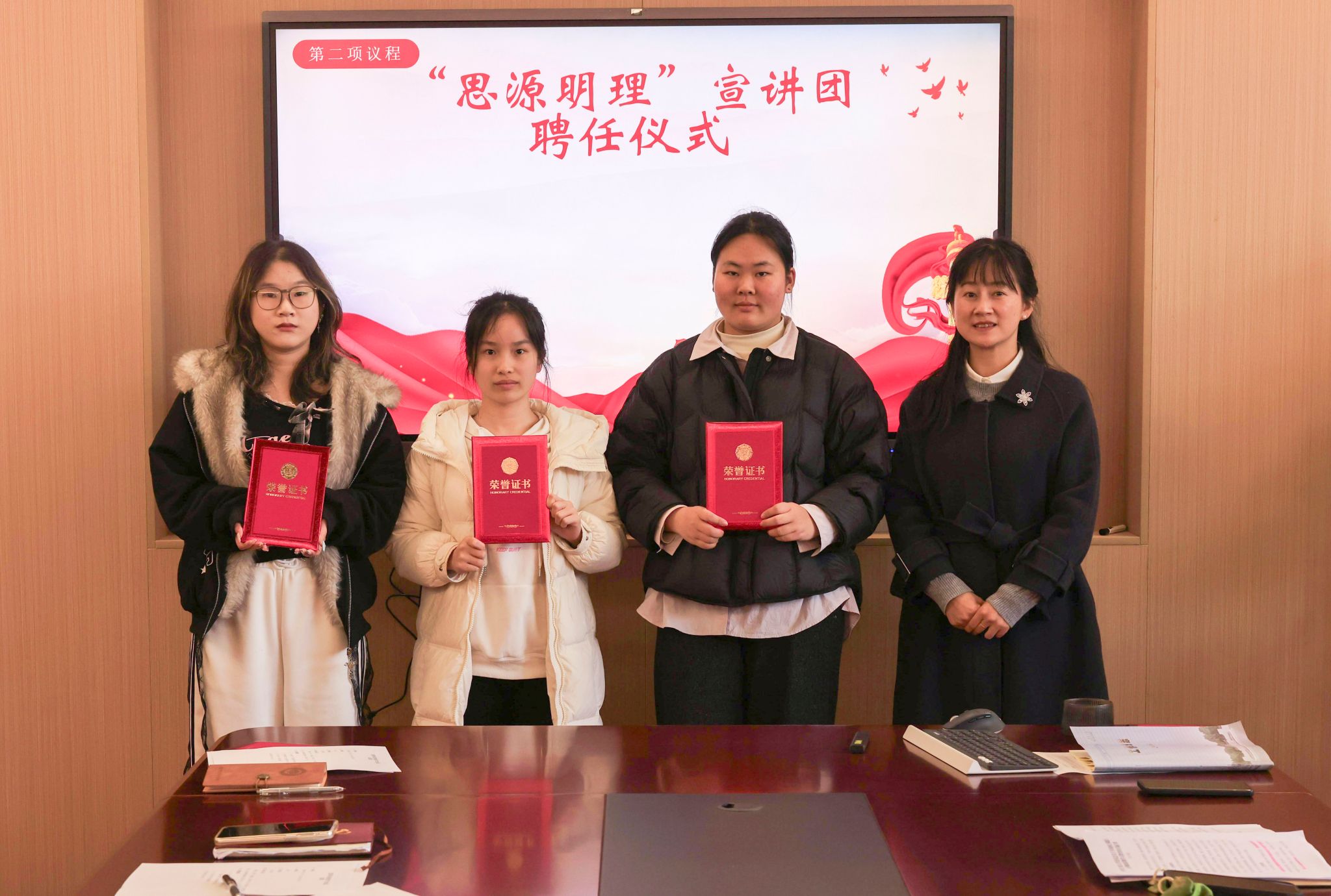 会议首先举行了“宁大潮音”思政微课院赛颁奖仪式,党委书记霍妍为获奖选手颁发证书。随后进行“思源明理”宣讲团聘任仪式,学院党委副书记、宣讲团团长姜萍为新成员颁发聘书。在接下来的3月支部工作要点解读中,党委委员全晶晶对主题教育工作、“三会一课”规范性等进行了重点强调。