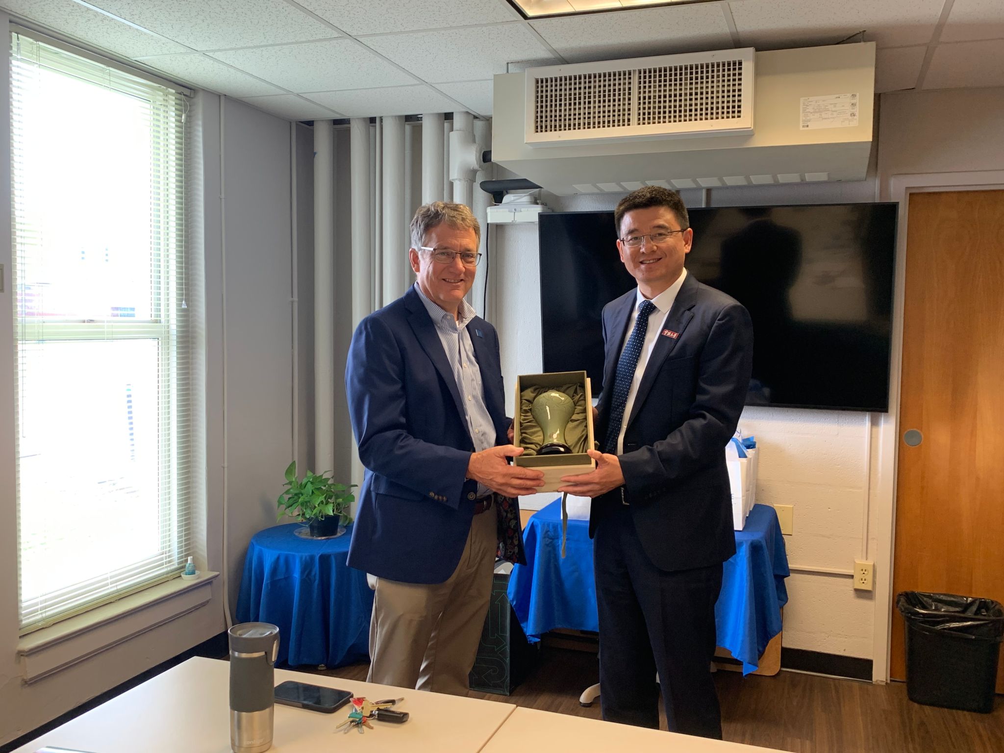 5月10日下午,代表团一行与留在中田纳西州立大学的部分学生进行座谈交流,周青了解学生在美的学习、生活和未来升学及就业等情况,勉励在美学子不断努力取得更好成绩。最后,周青向学生赠送宁大特色纪念品,充分展现了母校关怀。