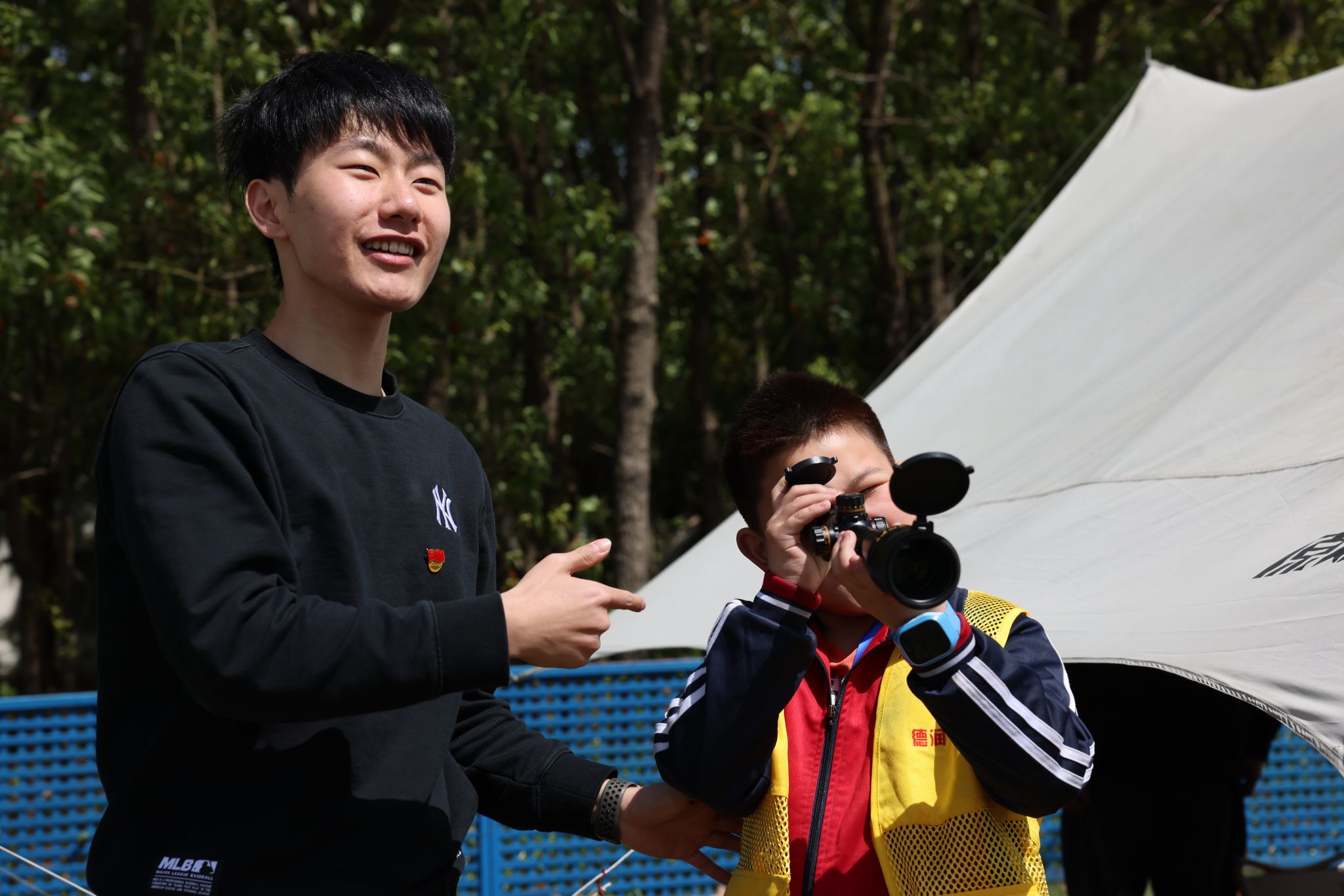 “锁定方位!三点钟方向油菜花田惊现完美对称图腾!”随着小老师周榆丰清亮的指令划破春风,萌娃们霎时切换成数学特工模式。望远镜里青瓦白墙的飞檐正与倒影缔结镜像契约,鹅黄花海上每一朵十字花序都在暗合黄金分割的韵律。小朋友们惊叹:“原来数学老师粉笔下的几何对称,就在我家的后院!”